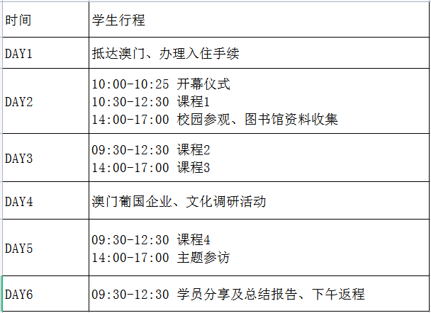 *上述行程、課程、參訪安排或會(huì)受不確定因素影響而作出調(diào)整(如場地臨時(shí)關(guān)閉、惡劣天氣等),澳門大學(xué)將保留最終決定權(quán)。